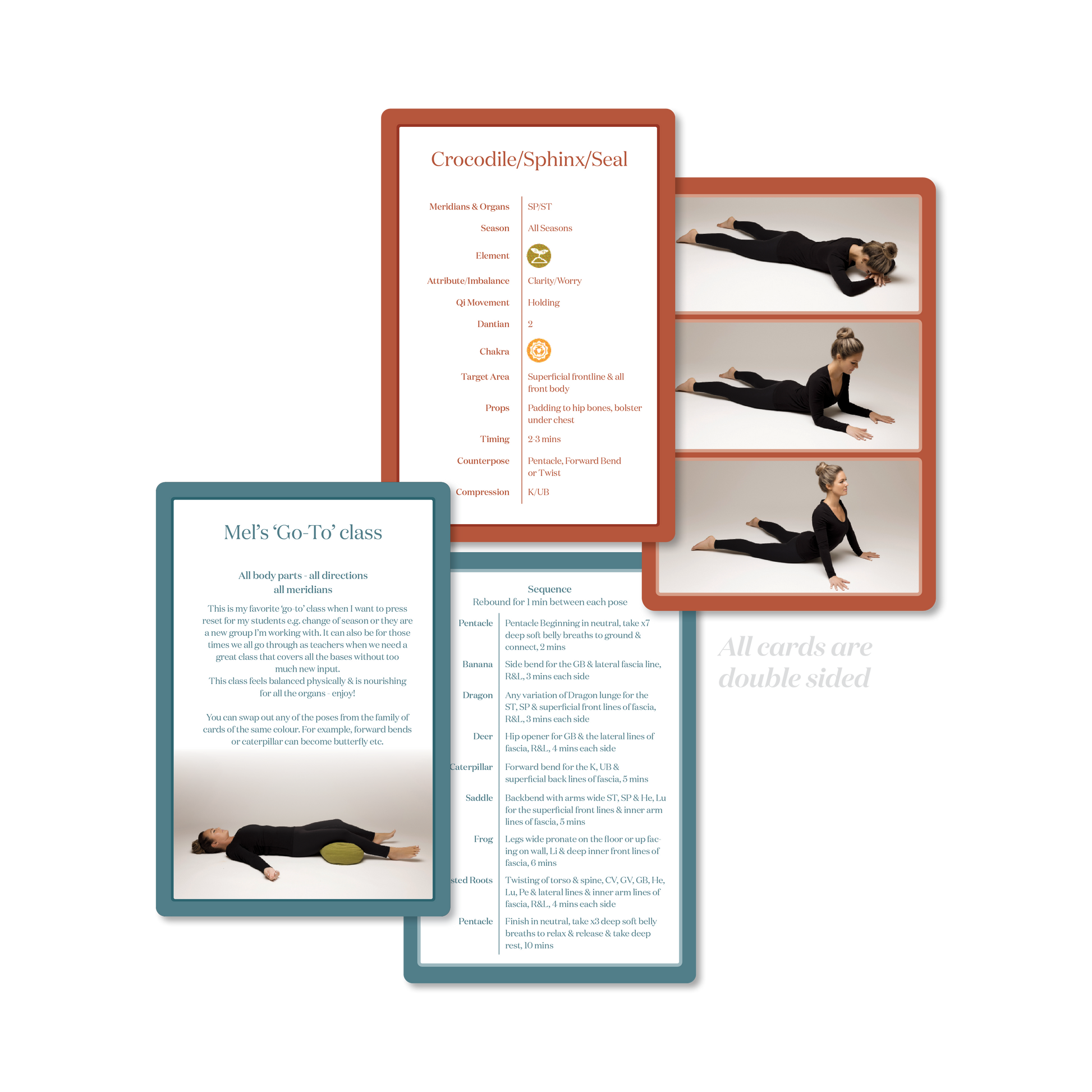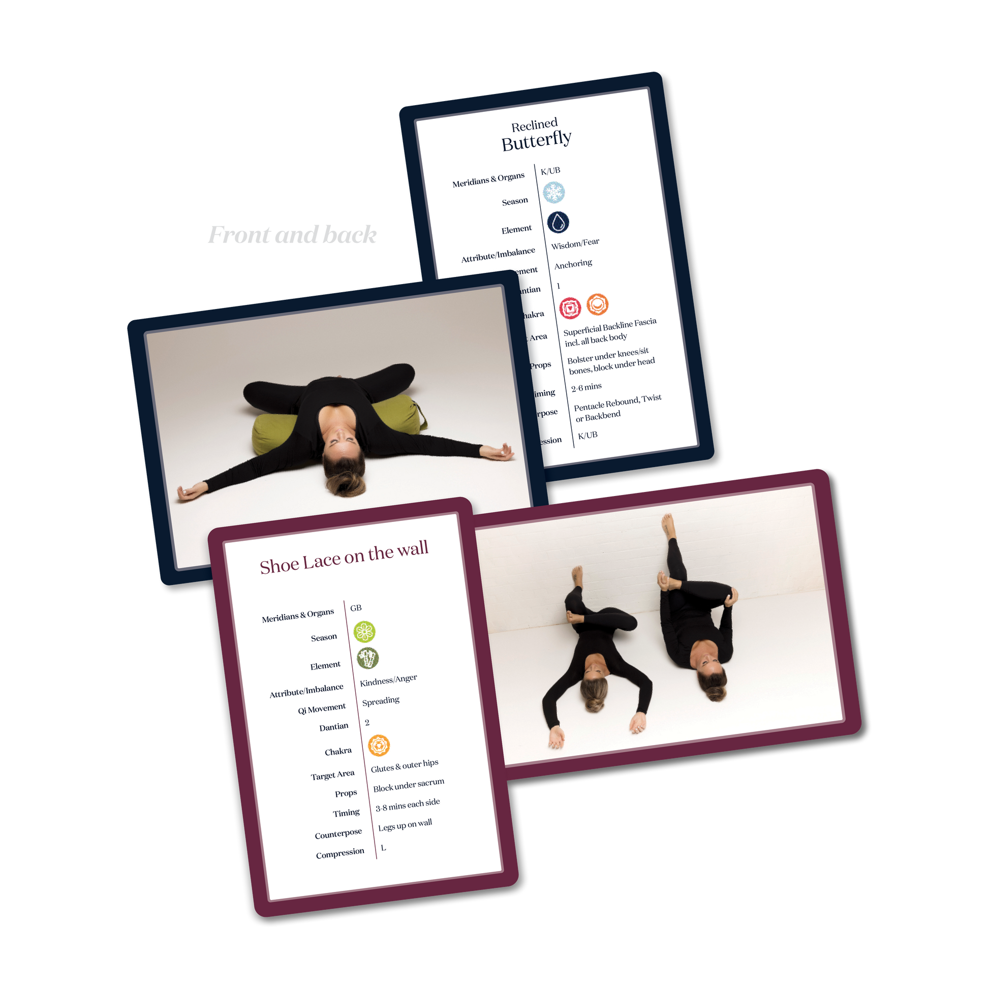 The Yin Deck is a thoughtfully designed set of 57 double-sided cards created to inspire, educate, and deepen your understanding of Yin Yoga. Whether you’re a teacher or student, these cards offer a practical and beautiful tool to support intuitive sequencing, energetic insight, and embodied practice.